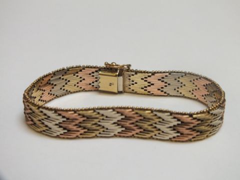 A 375 TRI COLOUR GOLD BRACELET, approx weight 29.2g