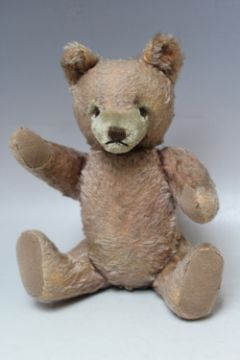 A VINTAGE PLAYWORN MOHAIR STEIFF TEDDY BEAR, H 35 cm