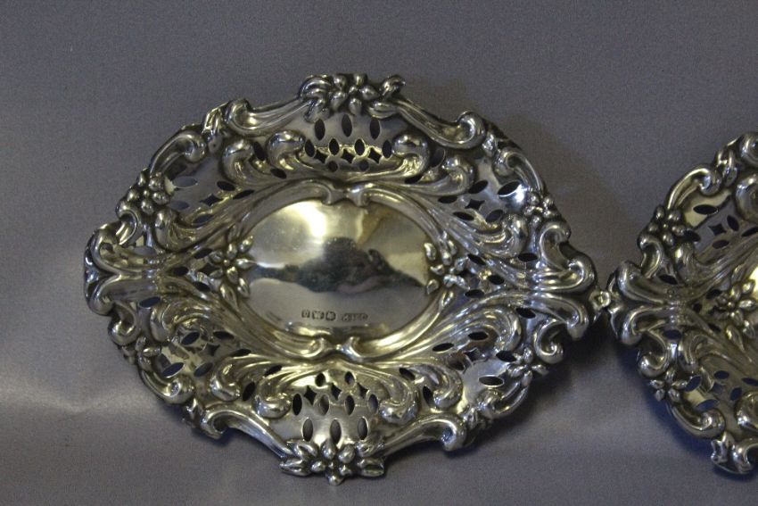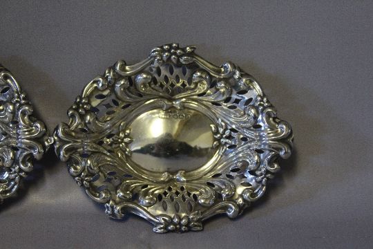 A PAIR OF HALLMARKED SILVER PIERCED BON BON DISHES - SHEFFIELD 1913, W 11.5 cm