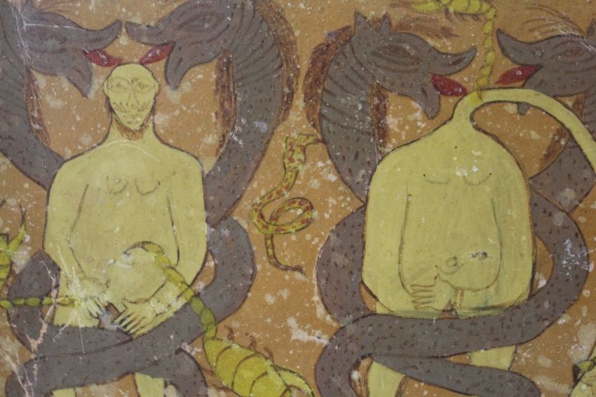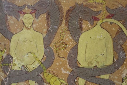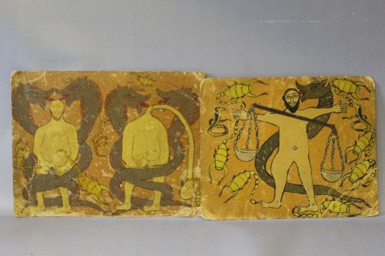 (XX). A pair of modernist figure and animal studies, unsigned mixed medias on boards, unframed, average 25 x 33 cm