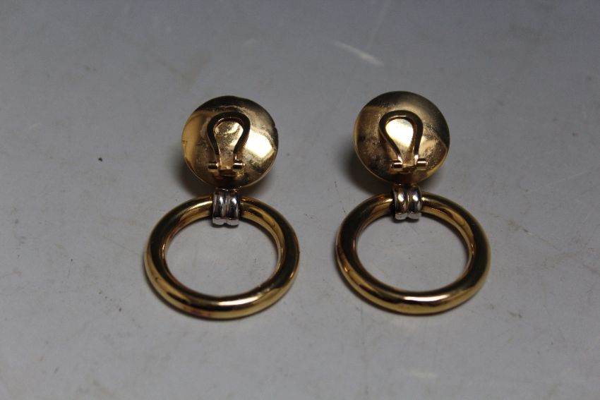 A PAIR OF YELLOW AND WHITE METAL RETRO STYLE CLIP ON EARRINGS MARKED .750, approx weight 11.8 g