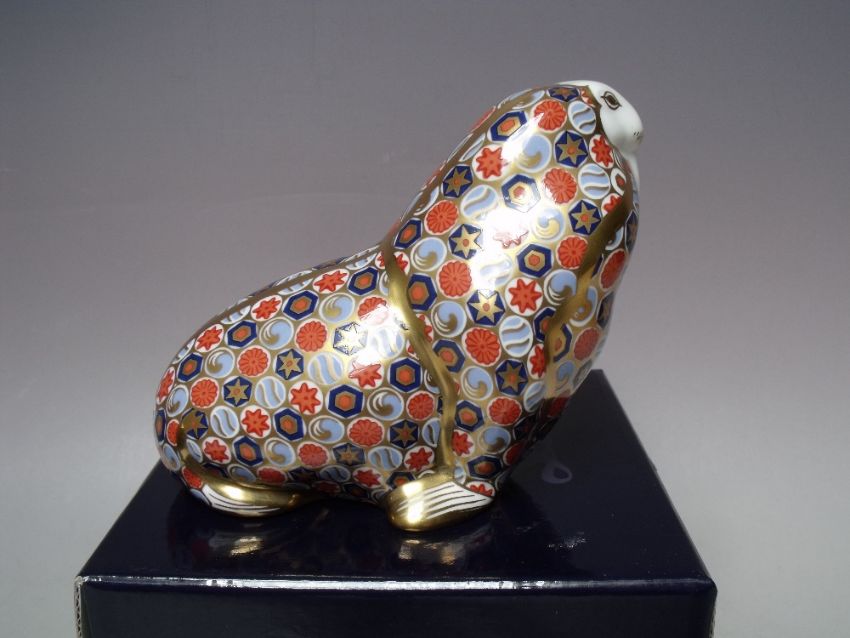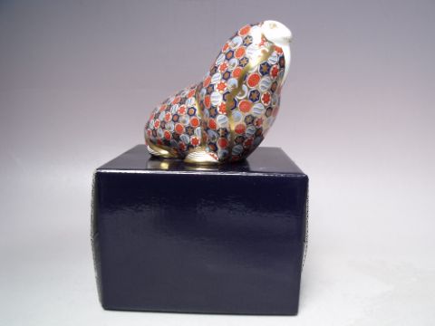 A ROYAL CROWN DERBY RUSSIAN WALRUS PAPERWEIGHT, gold stopper, with box, H 10.5 cm
