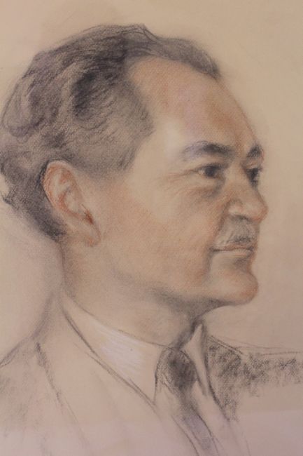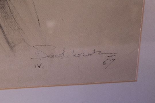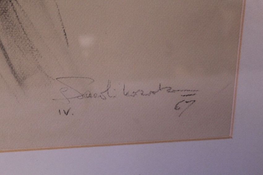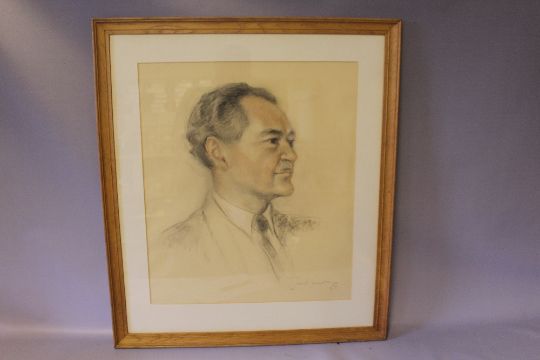 (XX). Head and shoulder portrait study of a gentleman, indistinctly signed and dated 1967 lower right, pencil & charcoal on paper, framed and glazed, 54 x 46 cm