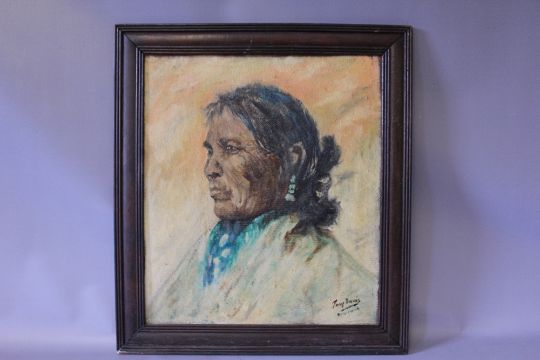 TONY DAVIS (XX). Portrait study of a native American Indian, signed lower right, oil on board, framed, 40 x 34 cm