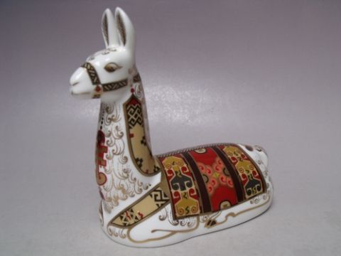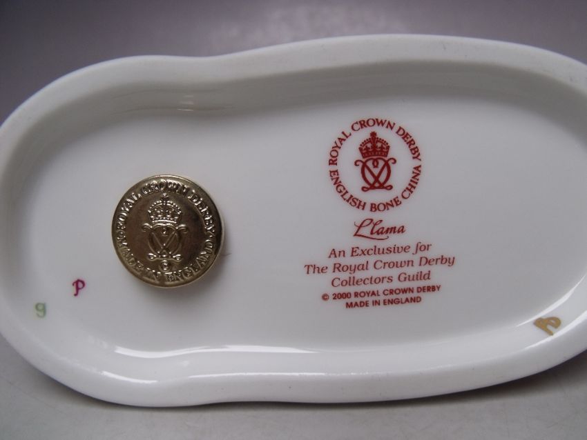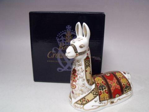 A ROYAL CROWN DERBY COLLECTORS GUILD LLAMA PAPERWEIGHT, gold stopper, with box, H 13 cm, L 14 cm