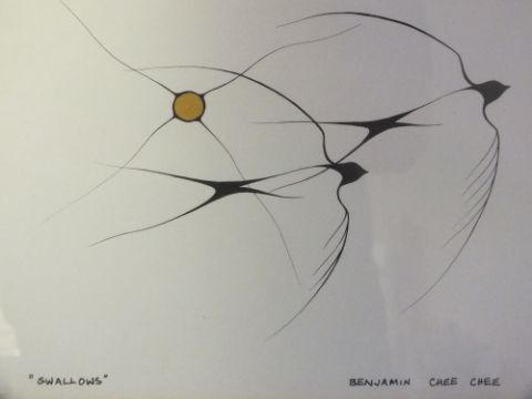 BENJAMIN CHEE CHEE (1944-1977) 'Swallows', lithograph in colours, signed lower right, framed and glazed, 15 x 22 cm