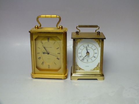 A MODERN MAPPIN & WEBB QUARTZ BRASS CASED CARRIAGE CLOCK, H 17 cm, together with a Metamec Chime example (2)