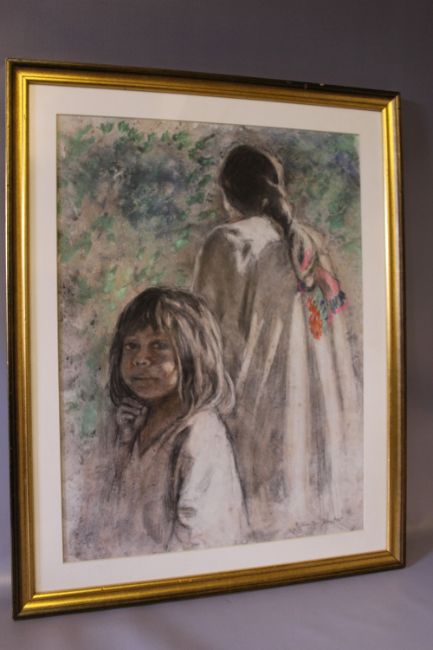 DIMITAR KRUSTER (XX). Continental school, a study of two young girls, signed lower right, pastel on paper, framed and glazed, 54 x 40 cm
