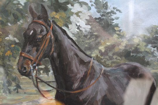 DOROTHY PASTON FISHER. An impressionist wooded landscape with horse standing by a gate, signed and dated 1924 lower right, oil on canvas, unframed, 43 x 33 cm
