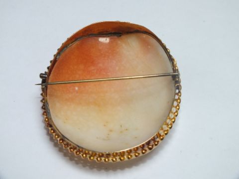 AN OVAL CARVED FREEFORM CAMEO DEPICTING A CONTINENTAL FIGURAL SCENE, set in an unmarked yellow metal mount. cameo H 6.5 cm,