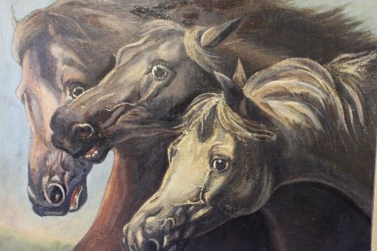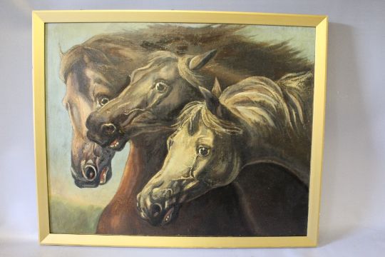 (XIX-XX). Study of three horses heads, unsigned, oil on canvas laid on board, framed, 48 x 60 cm