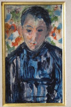 (XX). Impressionist portrait study of a young man, signed upper left, oil on board, framed, 23 x 13 cm