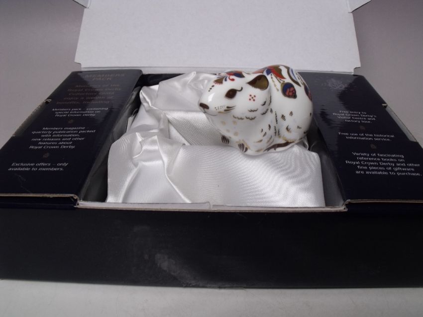 A ROYAL CROWN DERBY COLLECTORS GUILD BANK VOLE PAPERWEIGHT, gold stopper, with box, L 8 cm