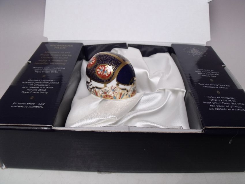 A ROYAL CROWN DERBY COLLECTORS GUILD LADYBIRD PAPERWEIGHT, silver stopper, with box, L 5.5 cm