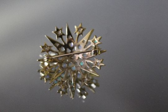 A HALLMARKED OPAL SET 9 CT GOLD 'STAR' BROOCH, approx weight 5.8g, W 3 cm