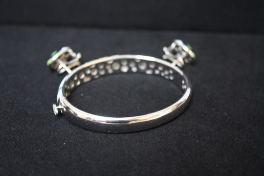 A ROBERTO COIN 18CT WHITE GOLD AND DIAMOND ENAMELLED BANGLE AND PAIR OF EAR-CLIPS FROM THE 'VINTAGE' COLLECTION, the bangle with swirled enamel decoration and pave diamond set sections, diamond weight 0.42 ct, the ear-clips diamond weight 0.25 ct (3)