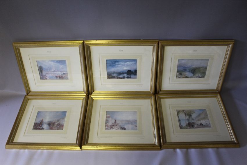 J M W TURNER RA. A set of six gilt framed and glazed 'The Tate Gallery London- Wanderings By The Seine' limited edition prints, all numbered 229 / 5000 with certificates to reverse
