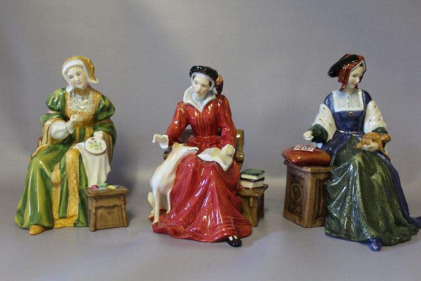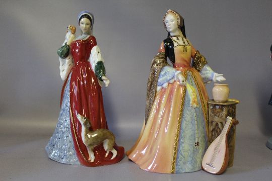 ROYAL DOULTON LIMITED EDITION FIGURINES KING HENRY VIII AND WIVES, modelled by Pauline Parsons, King Henry VIII HN3458 No. 1356/9500, Catherine of Aragon HN3233 No. 2155/9500, Catherine Parr HN3450 No. 2575/9500, Anne Boleyn HN3232 No. 7266/9500, Jane Seymour HN3349 No. 8881/9500, Catherine Howard HN3449 No. 2939/9500, Anne of Cleves HN3356 No. 2878/9500, complete with associated certificates (7)