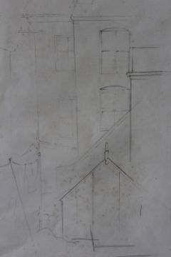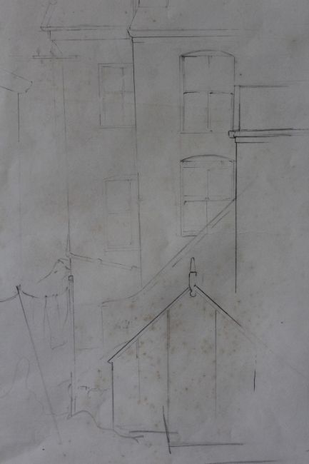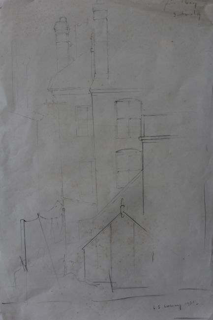CIRCLE OF LAWRENCE STEPHEN LOWRY (1887-1976). Study of Tenement buildings, bears signature and date lower right, pencil on paper, unframed, 56 x 38 cm