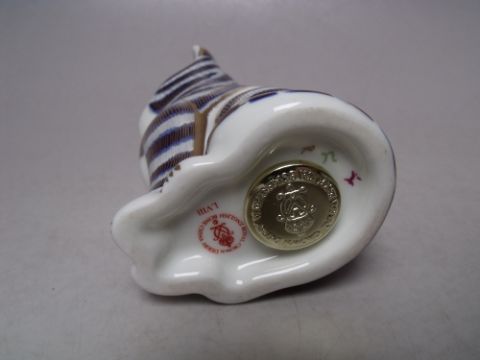 A ROYAL CROWN DERBY COLLECTORS GUILD SCRUFF PUPPY PAPERWEIGHT, gold stopper, with box, L 9 cm