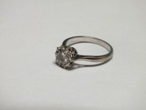 AN 18CT WHITE GOLD DIAMOND SOLITAIRE RING, the brilliant cut diamond being of an estimated 0.50 carat in an illusion style setting, ring size L
