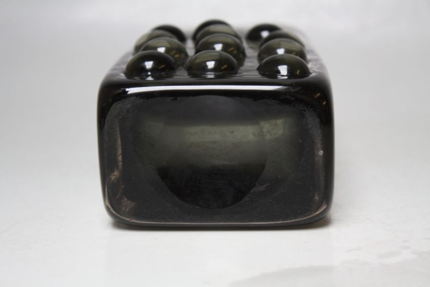 A GEOFFREY BAXTER FOR WHITEFRIARS TEXTURED GLASS 'MOBILE PHONE' SLAB VASE, in willow, H 16.5 cm