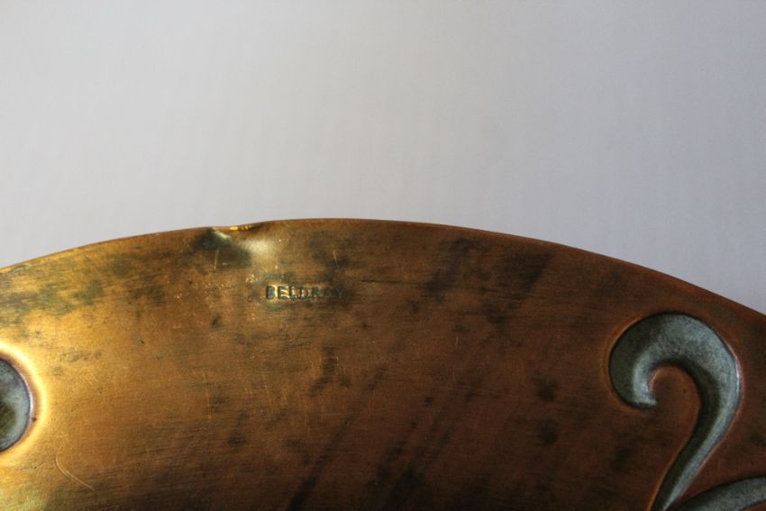 BELDRAY. oval copper tray with Art Nouveau designs to edge, stamped verso, 24 x 31 cm