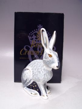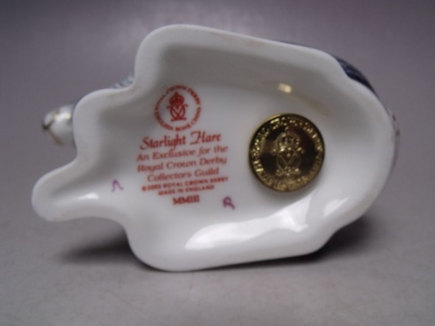A ROYAL CROWN DERBY COLLECTORS GUILD STARLIGHT HARE PAPERWEIGHT, gold stopper, with box, H 13.5 cm
