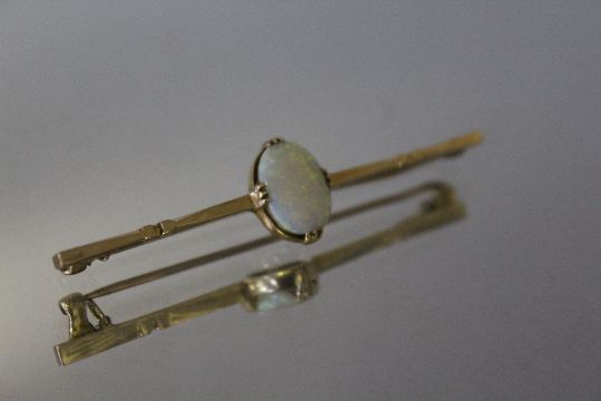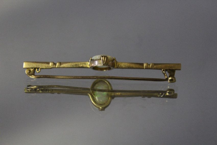 A 15CT OPAL STOCK PIN, approx weight 5g, W 6 cm