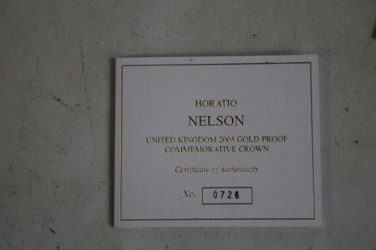 ROYAL MINT, NELSON TRAFALGAR TWO GOLD £5 (Five Pounds) COIN SET, consisting of Battle of Trafalgar coin and 2005 Nelson coin, in case of issue with COAs.