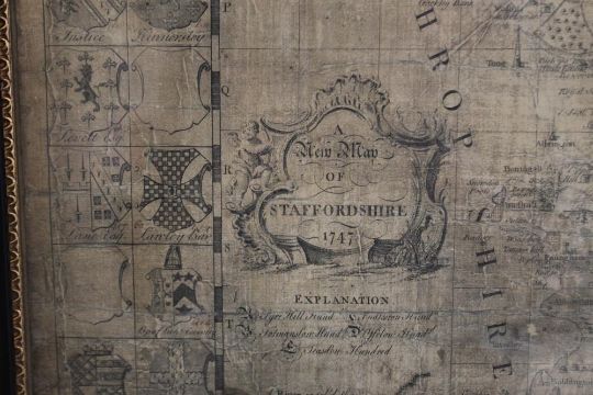 THOMAS JEFFREYS - A NEW MAP OF STAFFORDSHIRE 1747, printed for Samuel Parsons, framed and glazed but poor condition, framed size 74 x 75.5 cm