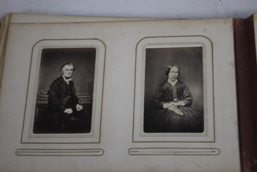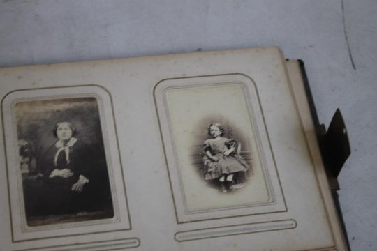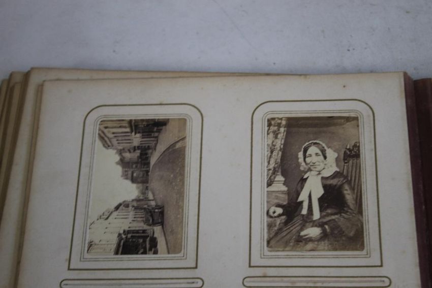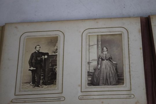 A VICTORIAN PHOTOGRAPH ALBUM AND CONTENTS, mostly portraits and full length figures.