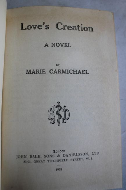 MARIE CARMICHAEL (Marie Stopes) - 'LOVE'S CREATION', published by John Bale, Sons & Danielsson 1928, first edition of her only novel