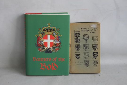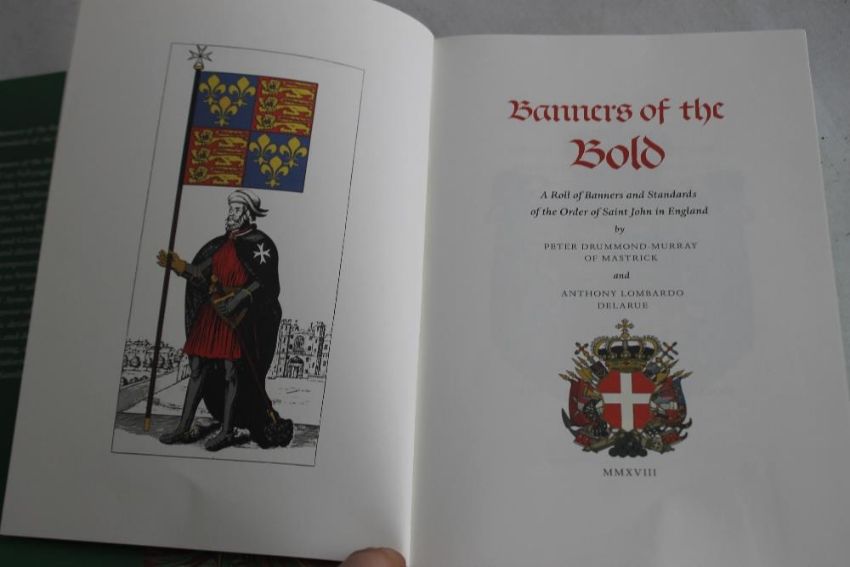 PETER DRUMMOND-MURRAY OF MASTRICK & ANTHONY LOMBARDO DELARUE - "BANNERS OF THE BOLD" 2018, a limited edition work being a roll of banners and standards of the Order of Saint John in England No. 209/500, together with Lieutenant-Colonel G. R. gayre - "The Heraldry of the Knights of St. John" 1956 ex-library copy (2)