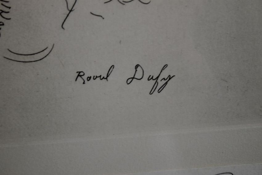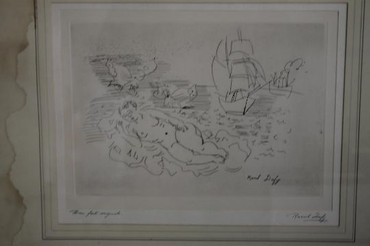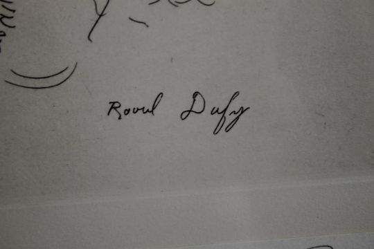 RAOUL DUFY PRINT (PETITE BAIGNEUSE AUX PAPILLONS), signed in pencil to the mount (59 cm x 51 cm including frame)