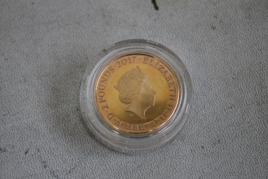 QEII 2017 GOLD PROOF "The First War Aviation" £2 coin, in case of issue with COA.