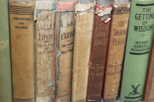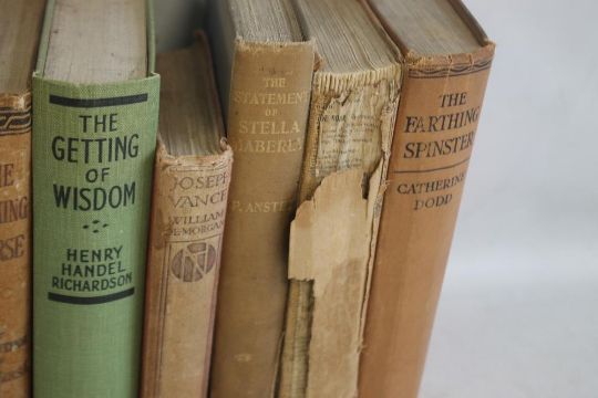 A SET OF BOOKS BY THE AUTHOR OF "ELIZABETH AND HER GERMAN GARDEN" includes one 'Love' with an inscription from Barnes Wallis to his wife "M. F. Wallis From one who knows that she knows what the wise know as LOVE. Christmas 1929", also first editions of "Fraulein Schmidt and Mr. Anstruther" 1907, "The Pastor's Wife" 1914, "Christopher and Columbus" 1919 A/F, "Vera" 1921, "Introduction To Sally" 1926, "Expiation" 1929, "Father" 1931, most have the name M. F. Wallis on the endpapers. "Expiation" has sketches on the endpapers. Also includes various books by F. Anstey, the author of Vice Versa, all with the name M. F. Wallis inside including "The Statement of Stella Maberly", 2nd edition, T. Fisher Unwin 1896, etc. (20)