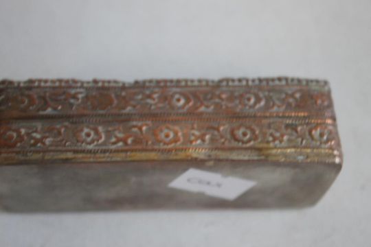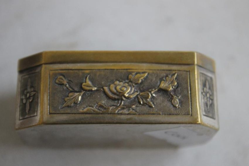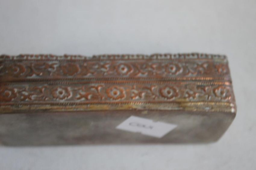 TWO CHINESE VINTAGE SNUFF TYPE BOXES, ONE WITH A PULL OFF LID INSET WITH A CARVED HARD STONE PANEL, the other with hinged lid decoration with a bird and tiger with foliate panels, length 9 cm (2)