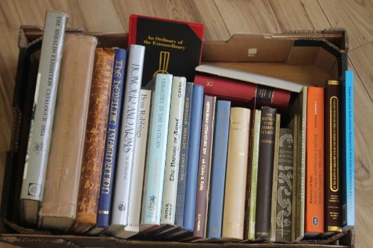 A MISCELLANEOUS COLLECTION OF BOOKS ON HERALDRY, covering various aspects including exhibition catalogues etc., also includes Winifred Hall - "Canting and Allusive Arms of England & Wales" 1966, Charles A. H. Franklin - "The Bearing of Coat-Armour by Ladies" 1923, Anthony Wagner - "How Lord Birkenhead Saved The Heralds" 1986 etc. (30)