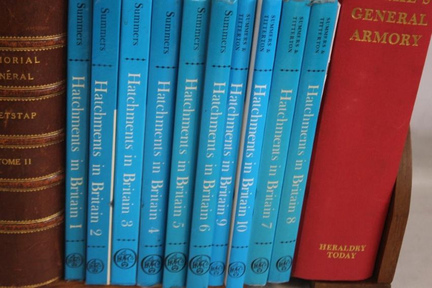 J. B. RIETSTAP - "ARMORIAL GENERAL" two volumes reproduced from the second edition 1884 , 1965 together with "Burke's General Armory" facsimile edition 1989 and Willoughby A. Littledale - "A Collection of Miscellaeous Grants, Crests, Confirmations, Augmentations and Exemplifications of Arms in the MSS" 1925 two volumes and Peter Summers - Hatchments in Britain twelve volumes with Addendum 2001 (17)