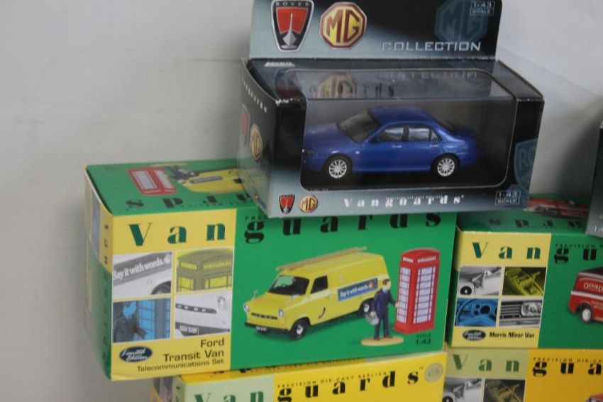 LLEDO BOXED VANGUARDS 1:43 SCALE CARS AND COMMERCIAL VEHICLES to include Ford Transit Van Telecommunications Set, (14)