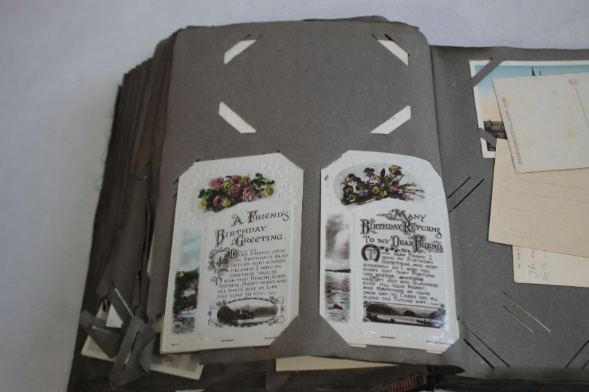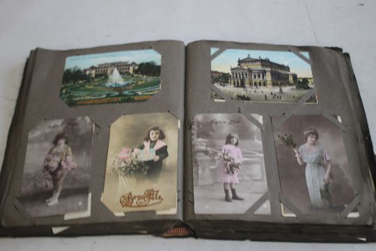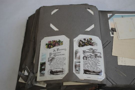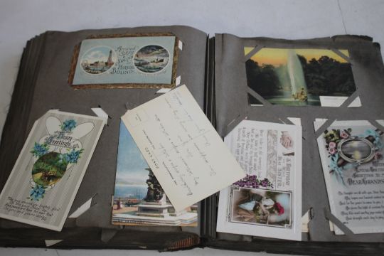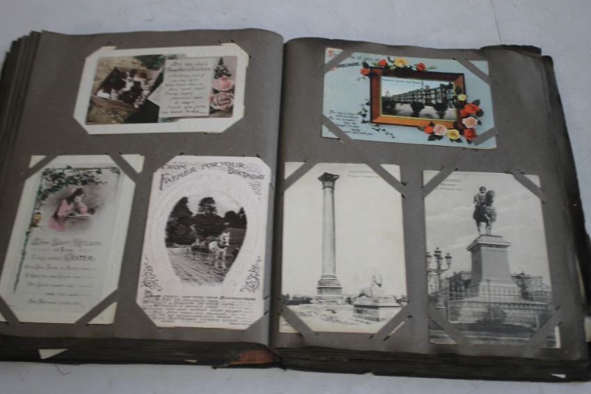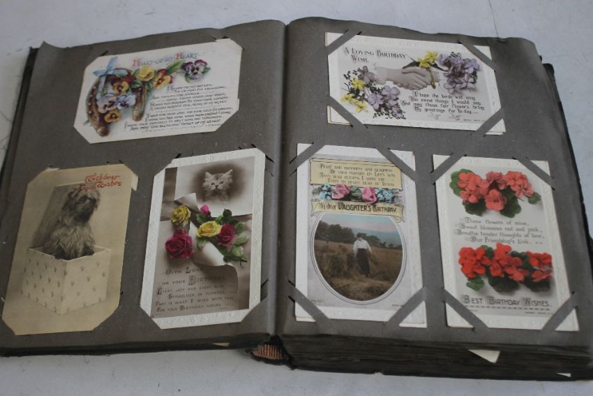 AN EARLY 20TH CENTURY AND LATER POSTCARD ALBUM AND CONTENTS, to include sentimental and topographic types, approx. 330