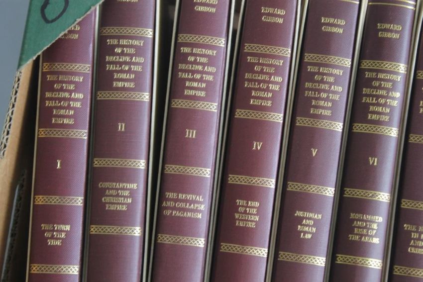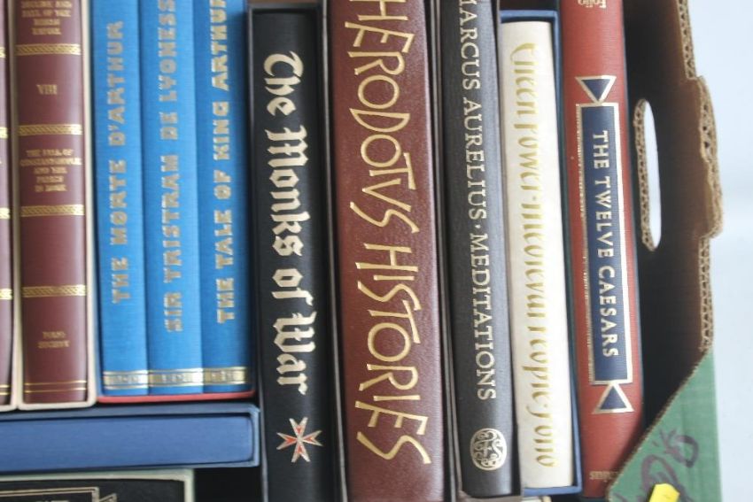 FOLIO SOCIETY - EDWARD GIBBON - "THE HISTORY OF THE DECLINE AND FALL OF THE ROMAN EMPIRE", eight volume set, 1983 - 1990, "Malory's Chronicles of King Arthur" three volume cased set 1982, "Herodotus", 1992, Desmond Seward - "The Monks of War", 2000, "Marcus Aurelius Meditations" 2002, and six other historical titles, all in slip cases (18)