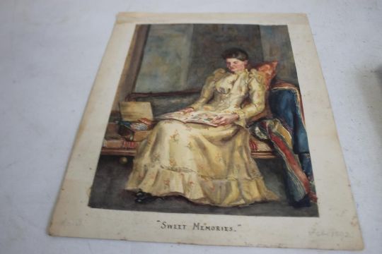 M. C. BLOXHAM - A FOLIO OF ORIGINAL WATERCOLOURS BY MARY CAROLINE BLOXHAM, AUNT OF MOLLY BLOXHAM WHO WAS WIFE OF SIR BARNES WALLIS, landscapes and botanical studies dated from 1880 - 1910, some have college labels and assessments, together with a folio of certificates and awards
