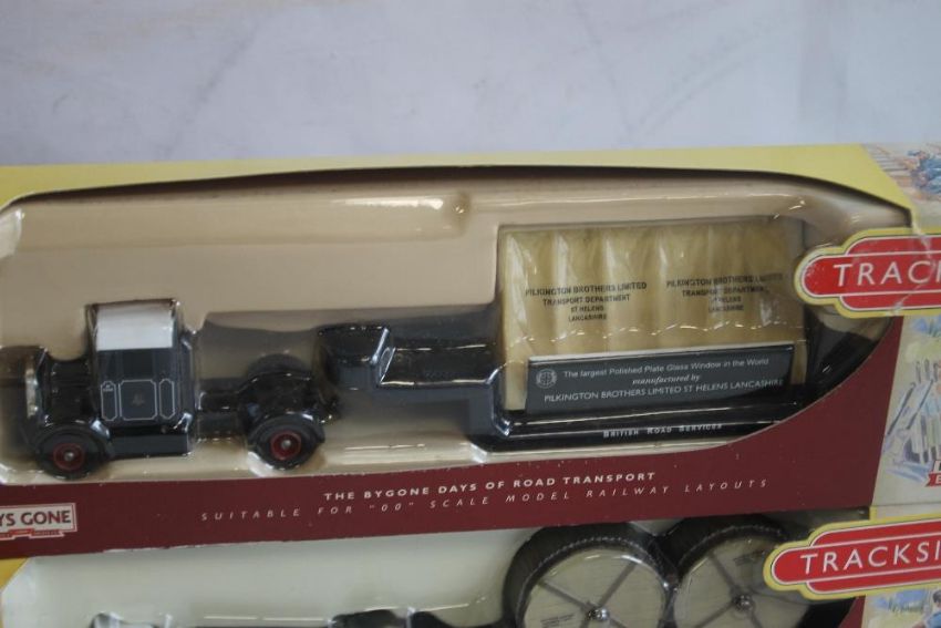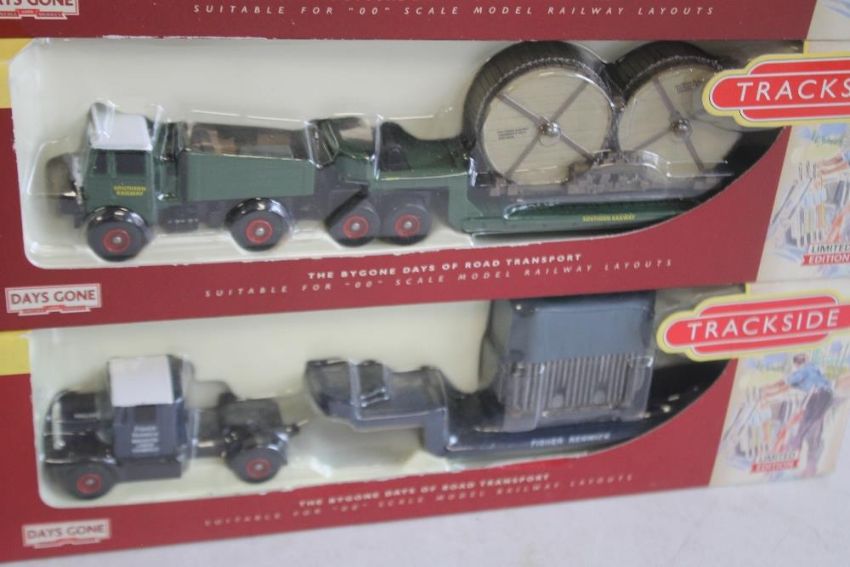 SIX BOXED 'TRACKSIDE' VEHICLES to include Lledo Days Gone Bygone Days of Road Transport British Railways Set, Fisher Renwick Low Loader with transformer, Southern Railway low loader with cable wheel load, British Road services low loader with Pilkington Glass Window load, together with two Corgi horse boxes (6)