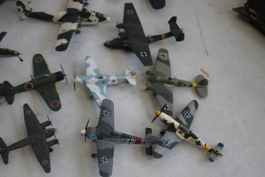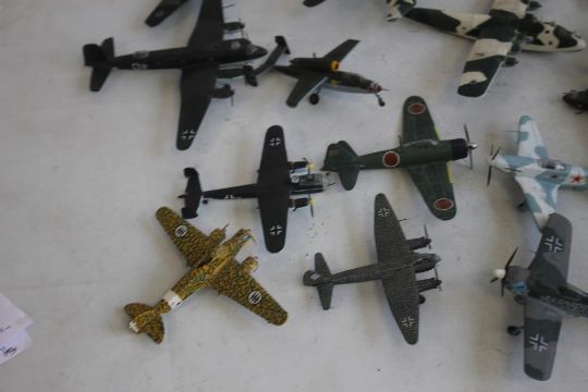 THIRTEEN GERMAN WW2 MODEL AIRCRAFT, to include Focke-Wolf, Dornier Sea Plane, etc together with five miscellaneous Aircraft including WWII Japanese types