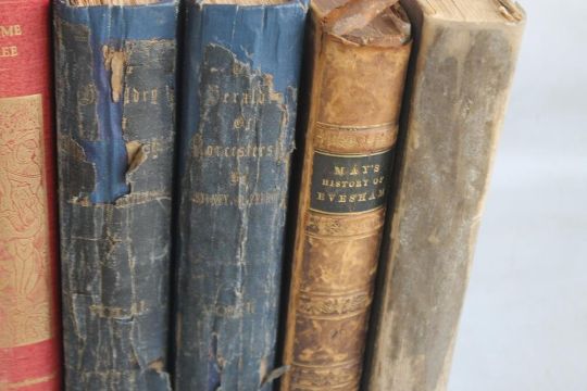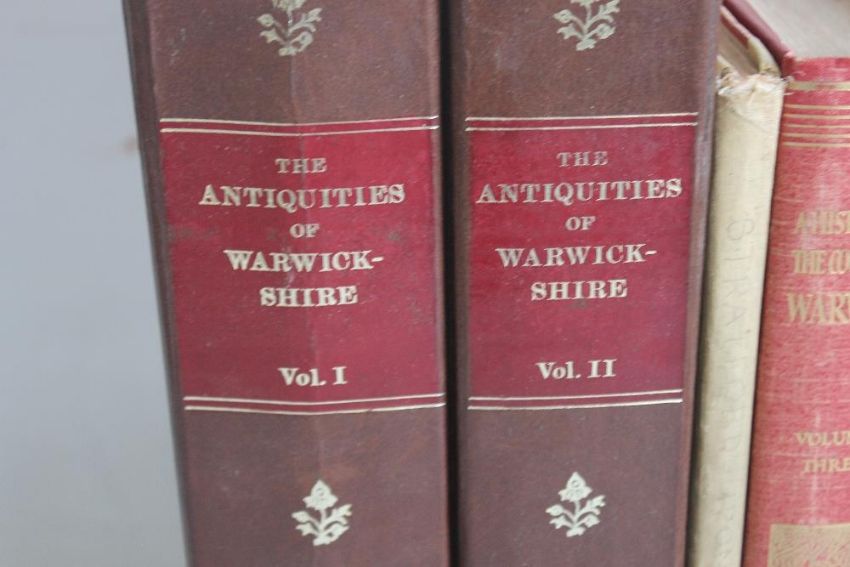 MIDLAND INTEREST BOOKS to include H. Sydney Grazebrook - "The Heraldry of Worcestershire", two volumes 1873 A/F, George May - "A Descriptive History of The Town of Evesham" 1845, Philip Styles - "The Borough of Stratford-Upon-Avon and the Parish of Alveston, 1946, Sir William Dugdale - "The Antiquities of Warwickshire" two volume facsimile edition by E. J. Morten, "The Victoria History of the County of Warwick Vol. 3 Barlichway Hundred" 1945 and "The Place-names of Warwickshire" 1936 (8)