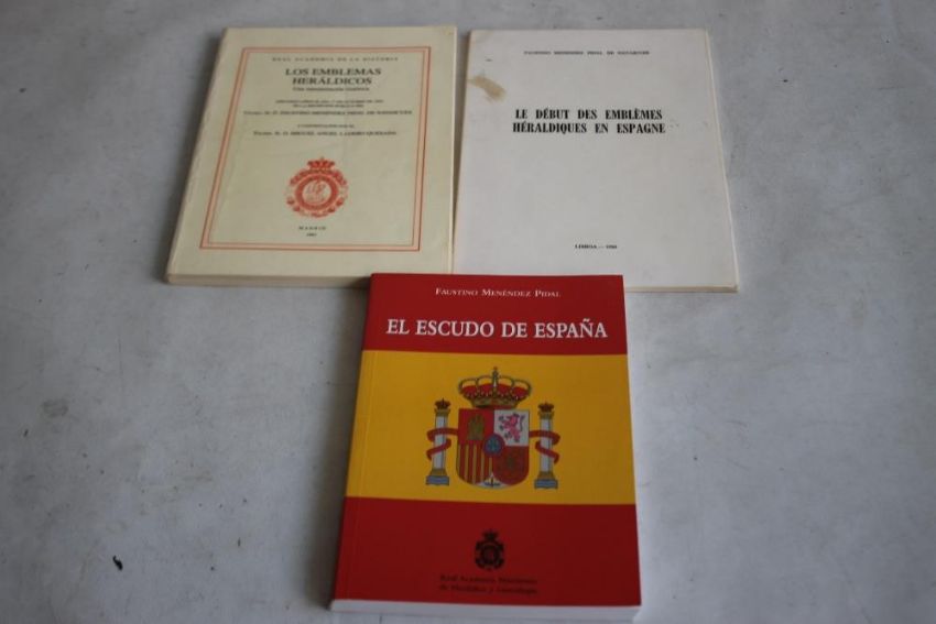 FAUSTINO MENENDEZ PIDAL - "EL ESCUDO DE ESPANA" 2004 together with same author - "Los Emblemas Heraldicos" 1993 and "Le Debut Des Emblemes Heraldiques En Espagne" 1984 (3)