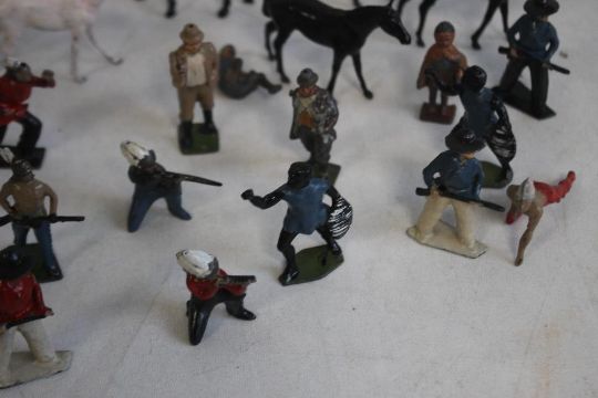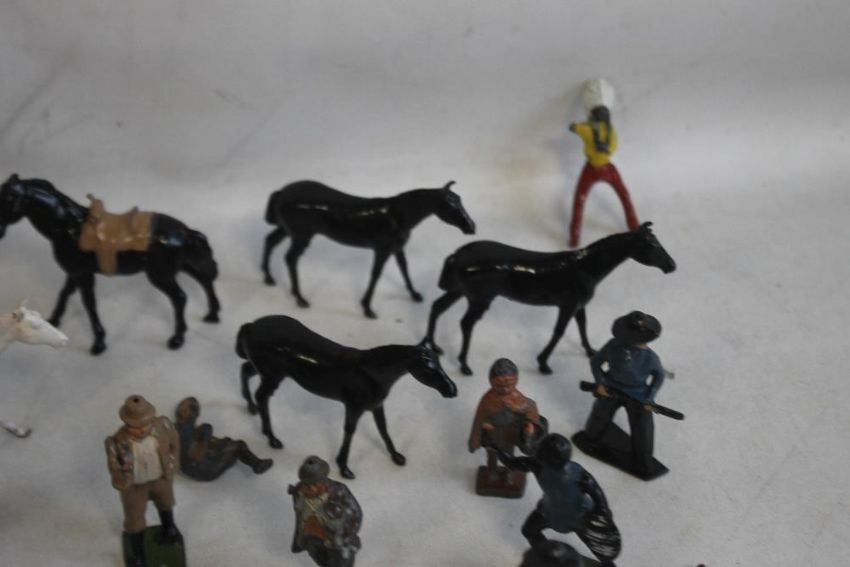 A COLLECTION OF ASSORTED LEAD FIGURES, some A/F to include cowboys, indians , etc including Britains examples