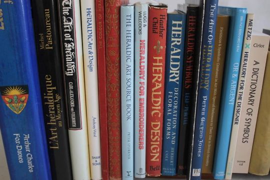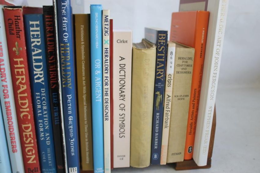 A QUANTITY OF BOOKS ON HERALDIC ART AND DESIGN to include Michel Pastoureau - "L'Art Heraldique au Moyen Age" 2009, Hiltmann & Hablot - "Heraldic Artists & Painters in the Middle Ages and Early Modern Times" 2018, and Stephen Friar - "The Heraldic Art of John Ferguson" 2018 etc. (25)